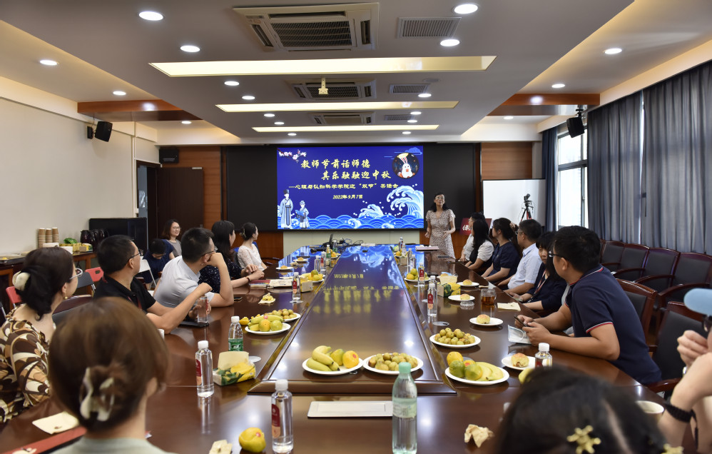 9月7日,在第38个教师节和中秋节佳节来临之际,我院召开了“教师节前话师德,其乐融融迎中秋——心理与认知科学学院迎‘双节’茶话会”。院党委书记方媛,党委副书记兼副院长庄瑜,副院长郝宁、李先春,院工会主席刘晓陵及部分教师出席活动。