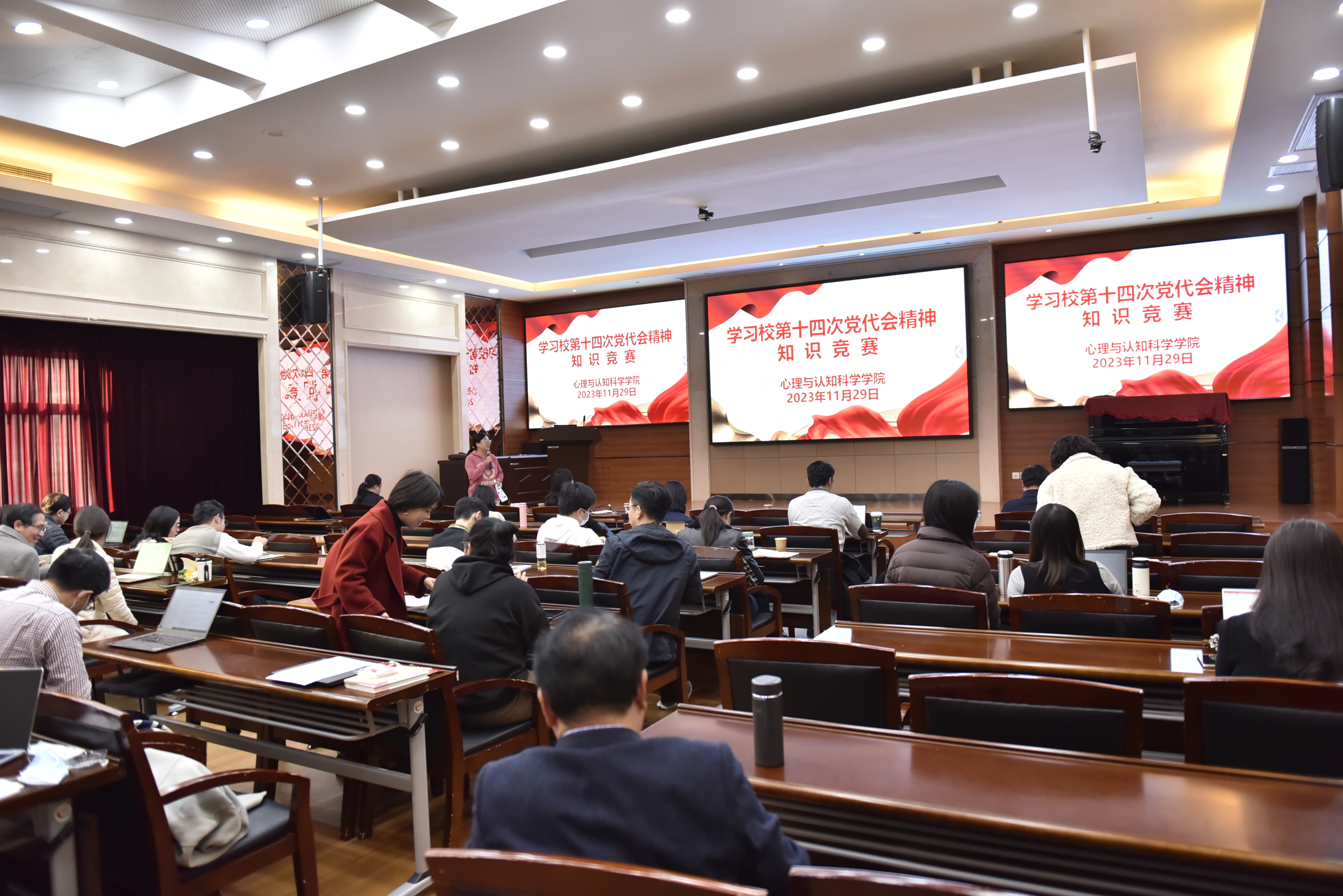 为深入学习贯彻落实校第十四次党代会精神,11月29日,在全院教师大会上,心理与认知科学学院工会举办“学习校第十四次党代会精神知识竞赛”活动,学院70余位教师参加活动。活动由院工会委员陶洁老师主持。