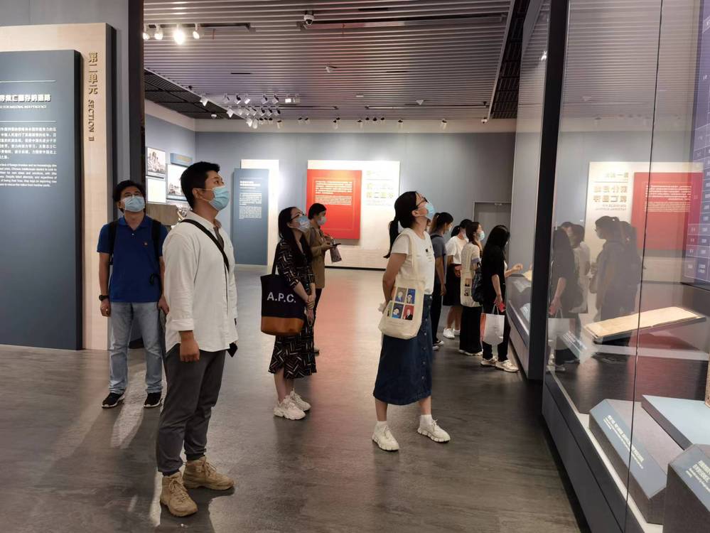 一大会址见证了中国共产党第一次全国代表大会的召开,通过了中国共产党的第一个纲领和第一个决议,是中国共产党的诞生地。在一大会址纪念馆内,师生共同参观了《伟大的开端》基本陈列展厅。展览以“初心使命”贯穿全篇,共分为序厅、“前仆后继、救亡图存”“民众觉醒、主义抉择”“早期组织、星火初燃”“开天辟地、日出东方”“砥砺前行、光辉历程”和尾厅7个板块。