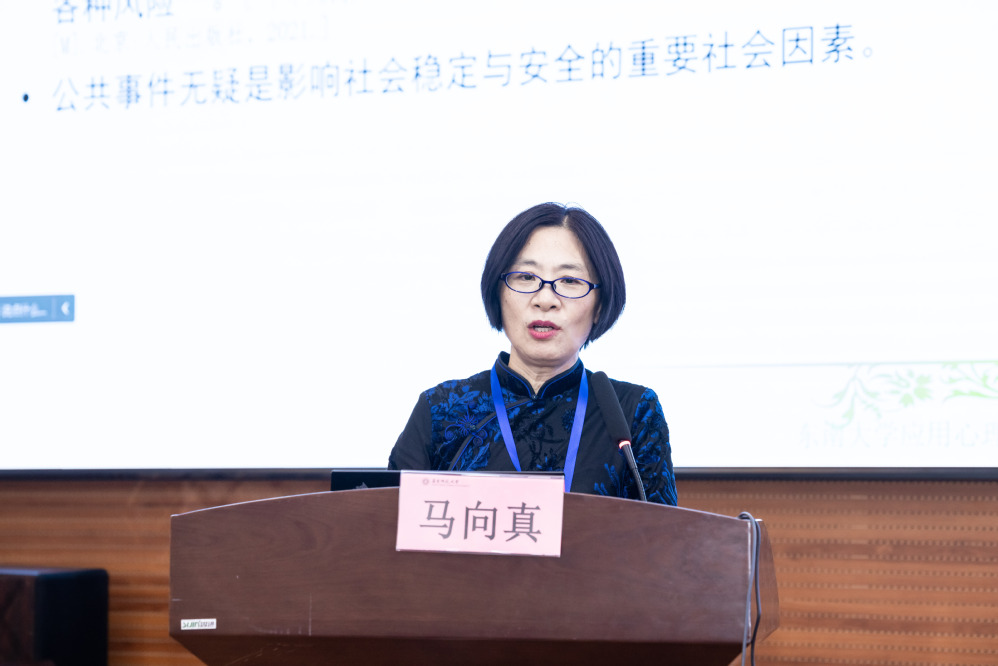东南大学马向真教授以“公共事件的道德心理研究”为题作特邀报告。她指出,中国的公关观念有别于西方,具有强烈伦理规范色彩,并基于现实公共事件阐述了道德冷漠、道德焦虑等心理症候。她表示面对公共事件,个体需要树立伦理认同,群体需要形成伦理共识,社会需要维护伦理秩序,国家需要引导伦理建构,从而促进公共事件中社会伦理心态良性发展。
