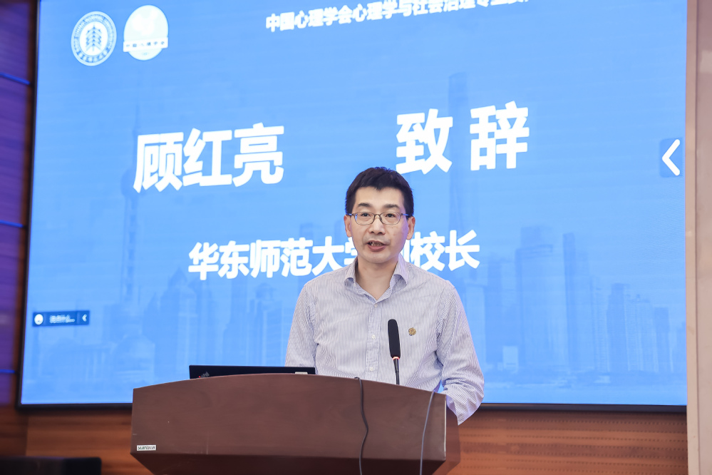 华东师范大学副校长顾红亮在欢迎辞中,首先代表华东师范大学向参会的专家学者表示欢迎。他指出,新时代中国特色社会治理体系建设需要借助科学理论,而心理学在其中扮演重要角色,为此而建立的心理学与社会治理专业委员会承担起了发挥心理学学科优势、组织跨学科联合力量推动社会治理的作用。近年来华东师范大学心理与认知科学学院在社会治理领域大力发展,打造了心理学与社会治理创新平台,以期为社会治理实践提供更多建言,本次大会是华东师范大学助力社会治理的又一次良机。他预祝本次大会圆满成功。