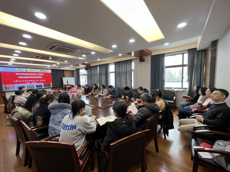 为全面贯彻习近平新时代中国特色社会主义思想,持续深入学习贯彻党的二十大精神,2023年3月1日在俊秀楼305会议室,心理与认知科学学院教工第一党支部召开组织生活会,总结2022年度党支部工作并完成民主评议党员。校党委常委、副校长周傲英作为该支部结对联系的校领导,受邀出席并指导工作。学院党委书记方媛、副书记兼副院长庄瑜、副院长李先春等作为支部成员出席本次组织生活会。