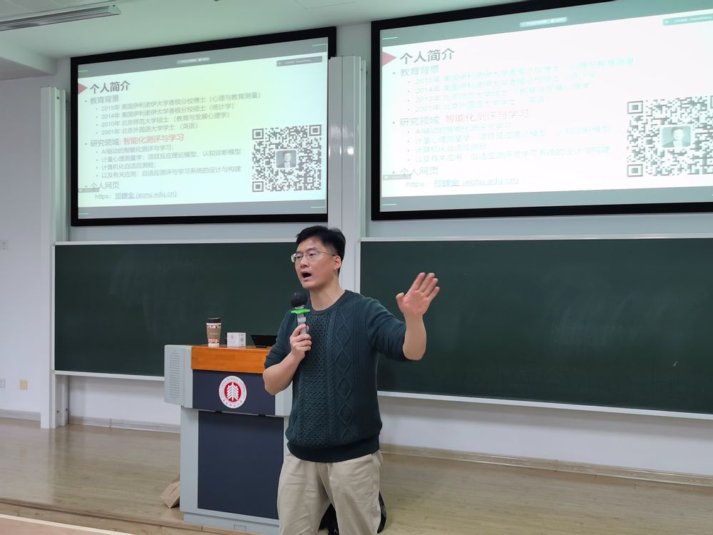 2023年12月10日下午,华东师大心理与认知科学学院、上海市心理学会心理测量与统计专业委员会邀请华东师大上海智能教育研究院郑蝉金副教授,在普陀校区田家炳楼223教室,作题为“计算机支持下的心理与教育测评技术及其应用”的报告。报告由我院刘晓陵副教授主持,我院师生通过线上线下方式聆听了报告。