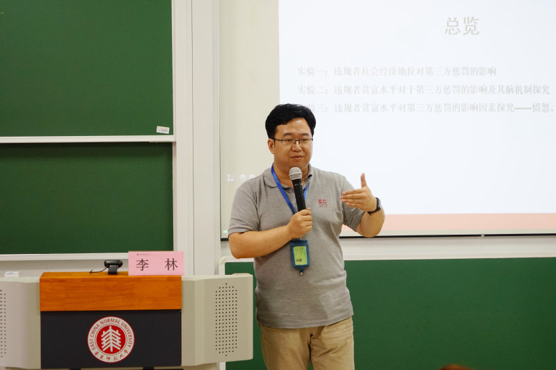 华东师范大学副教授李林介绍了第三方惩罚任务中对弱势违规者的容忍的研究成果,其中重点关注三个实验:违规者社会经济地位对第三方惩罚的影响;违规者贫富水平对于第三方惩罚的影响及其脑机制探究;违规者贫富水平对第三方惩罚的影响因素探究——愤怒、同情的平行中介。