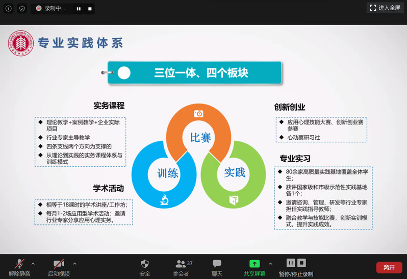 心理学系副系主任李世佳副教授、认知神经科学研究所所长王惠敏研究员分别向营员们介绍了各自系所的情况,MAP中心主任孟慧教授介绍了应用心理专业硕士的招生和培养情况。