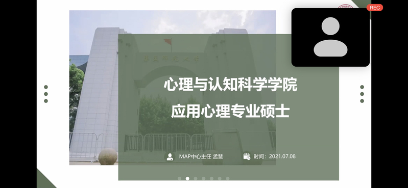 7月8日上午,学院在中目平台举行线上开营仪式。心理与认知科学学院副院长李先春教授对参加本次夏令营的同学们表示欢迎。华东师范大学研招办赵睿从“学校概况”、“研究生培养和资助体系”、“国境外交流和就业情况”、“研究生报考流程”等四个方面对华东师范大学的硕士招生培养进行了介绍。