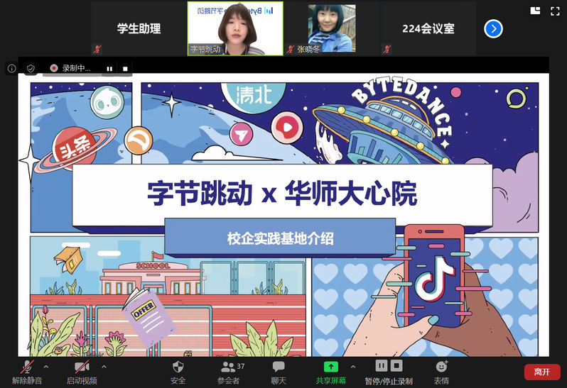 在实践基地讲座环节,夏令营邀请了华东师范大学附属精神卫生中心张静洁、建平中学张晓冬、字节跳动林琳、怡安翰威特顾佳旎等介绍其各自所在实践基地对MAP实践环节的培养情况。