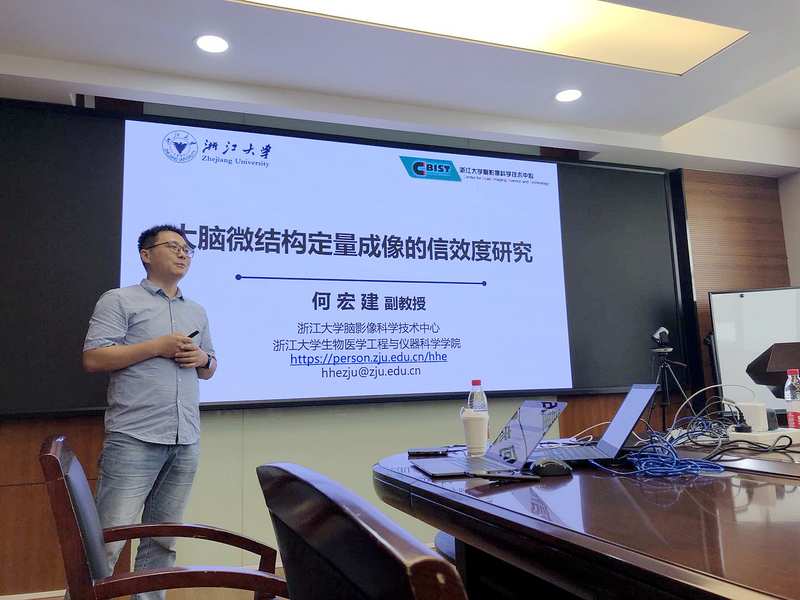 6月21日,我院俊秀青年学术俱乐部邀请浙江大学何宏建副教授,为我院以及上海市磁共振重点实验室的青年教师和研究生作了题为“大脑微结构定量成像的效度与信度研究”的学术报告。报告会由蔡清教授主持。