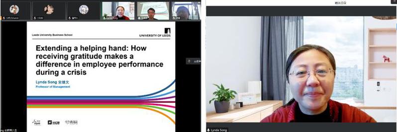 3月7日,心理与认知科学学院俊秀青年学术俱乐部系列讲座之一在线上顺利举办。英国利兹大学管理系主任宋继文教授(Prof. Lynda Jiwen Song)受段锦云教授的邀请,为我院师生作了以“伸出帮助之手:‘接受感恩’如何在危机中提升员工绩效”为主题的精彩学术分享。“社会决策和管理决策”学术团队师生在303会议室集体参与了学术报告。