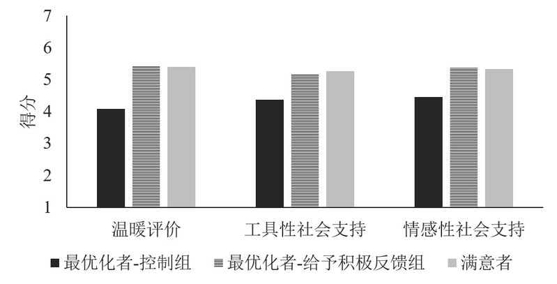为检验上述效应是否稳定普遍,研究者拓展了社会支持的形式,包括帮忙搬家、借钱等工具性社会支持和分享趣事、倾听心事等情感性社会支持,她们发现,无论何种形式,人们都不愿为最优化决策者提供社会支持,其原因是人们认为最优化决策者不温暖。正可谓追求最优者寡助。