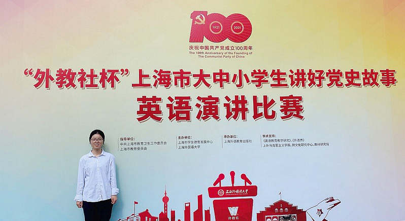 2021年7月,我院2017级本科生戴晓妍参加“外教社杯”上海市大中小学生讲好党史故事英语演讲比赛,在外语学院赵朝永老师的指导下,喜获本科组一等奖。