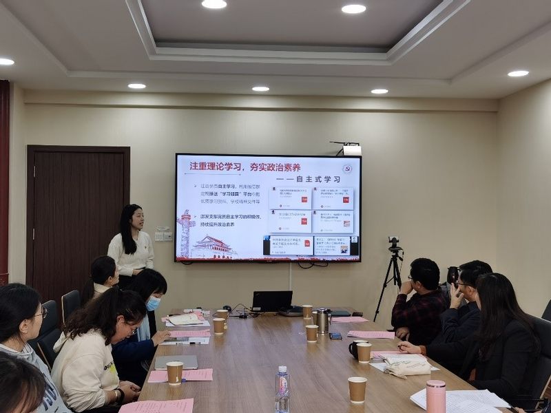 2022级学术型硕士研究生党支部书记徐歆辰从注重理论学习、创新组织生活、服务党员成长三个方面汇报了支部工作开展情况及成效。通过深入查摆,她指出目前支部存在党员理论学习与实际应用存在脱节,党员间、党员与群众间交流不足等问题。她表示下一步将切实加强理论学习与实际应用的联系,向样板党支部对标学习,并加强党员教育管理,以提升党建工作质量。