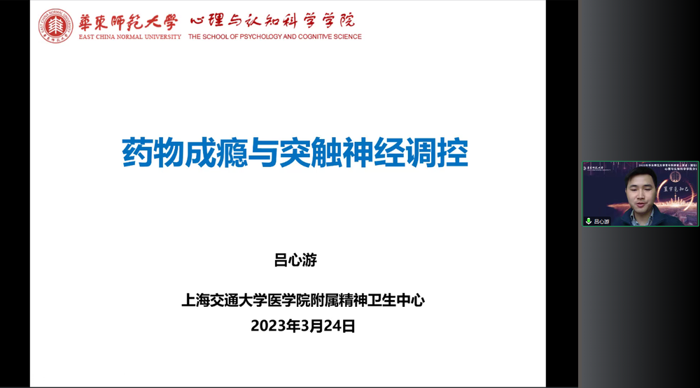上海市精神卫生中心的吕心游作了题为“药物成瘾与突触神经调控”的报告。吕心游认为,大脑特定神经环路的突触传递发生可塑性变化,是药物成瘾的重要发病机制。既往动物研究基于光遗传学或深部脑刺激的方法消除突触可塑变化,被证明可以有效干预成瘾相关行为,但相关侵入性操作严重阻碍了对人类受试者的治疗转化。通过对 “条件性线索唤起—消退” 这一有效治疗成瘾的心理学范式深入研究,研究者发现,药物记忆唤起通过快速移除突触上的钙渗透性AMPA受体,暂时下调了AMPA受体介导的前额皮层神经元突触传递,6小时后恢复到基础水平。这种由AMPAR运输介导的突触动态重塑是短暂记忆唤起促进成瘾记忆消除的重要神经基础。相关研究正围绕突触动态重塑开发更多的可用于临床转化的突触神经调控方案,用以干预药物成瘾。