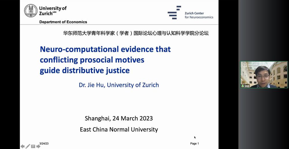 瑞士苏黎世大学的胡捷作了题为“Neurocomputational evidence that conflicting prosocial motives guide distributive justice”的报告。胡捷指出,在人类历史上,群体中的大多数冲突都源于个体感知到的资源分配的不平等。资源分配通常会引发人们对于分配公平的关注,但令人满意的资源分配方案也会涉及公平原则(如,不公平厌恶)以外的其他亲社会动机。然而,大多数有关资源分配的研究仅仅关注于不公平厌恶对个体行为的影响,忽略了其它动机可能的作用。胡捷的研究团队探究了人脑如何解决资源分配过程中多种亲社会动机之间的冲突。行为、计算模型和神经影像学证据表明,资源分配决策受到三种不同的亲社会动机(不公平厌恶、伤害厌恶和等级反转厌恶)影响。在神经水平上,这三种动机通过以纹状体为核心的神经网络影响个体最终的决策。此项研究加深了我们对公平相关行为背后的大脑机制的理解,并为税收政策等资源和财富再分配制度的制定和改进提供了新的参考方向和理论依据。