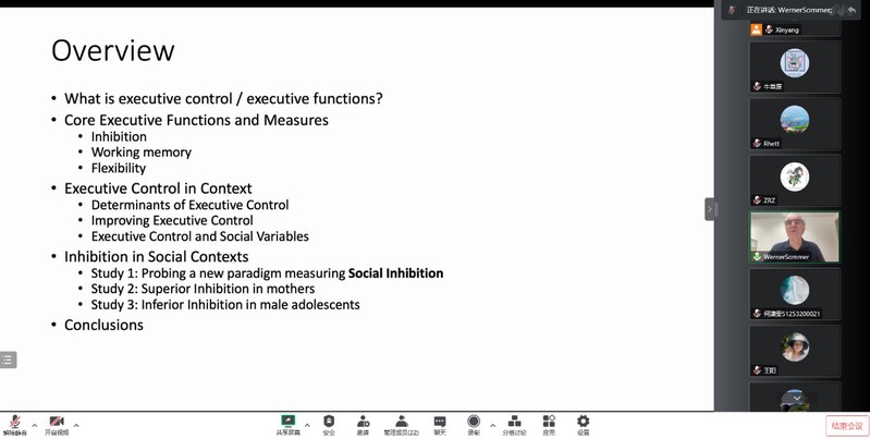2022年11月22日,德国柏林洪堡大学心理系Werner Sommer教授受邀,在线为我院青年教师和研究生作题为“Executive control in social contexts”的学术报告。报告会由我院明园晨晖学者刘欣阳博士主持,40余位师生参加了报告会。