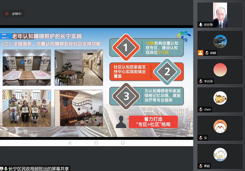 长宁区民政局养老服务科顾致远主任科员作了题目为“长宁区关于老年认知障碍照护体系建设的创新实践”的报告。她从长宁区养老服务实际落地执行的角度,介绍了长宁区养老工作概况以及其对认知障碍长者的新实践,以及长宁区养老服务工作的下一步工作思考。