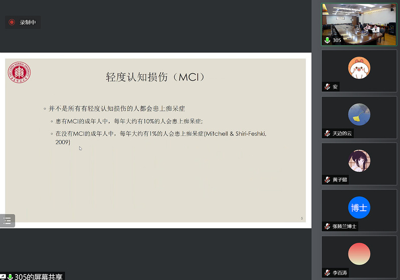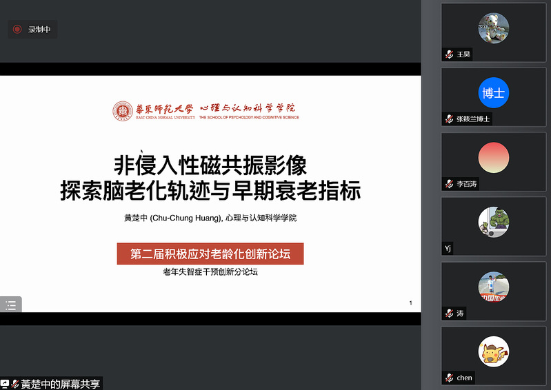 2022年11月19日下午,由华东师范大学心理与认知科学学院、上海市脑功能基因组学重点实验室和华东师范大学中国老龄协会老龄科研基地联合主办的“第二届积极应对老龄化创新论坛——老年失智症干预创新分论坛”,通过线上线下结合方式举行。香港大学秀圃老年研究中心张筱兰研究员,上海交通大学基础医学院副院长王昊教授,上海市长宁区民政局养老服务科顾致远主任科员,华东师范大学中国老龄协会老龄科研基地主任、人口研究所终身教授桂世勋教授,华东师范大学社会发展学院安秋玲副教授,上海市脑功能基因组学重点实验室主任、华东师范大学心理与认知科学学院认知神经科学研究所所长王惠敏研究员、李春霞副研究员、黄楚中副教授以及相关研究生30余人参加论坛。论坛由李春霞主持。