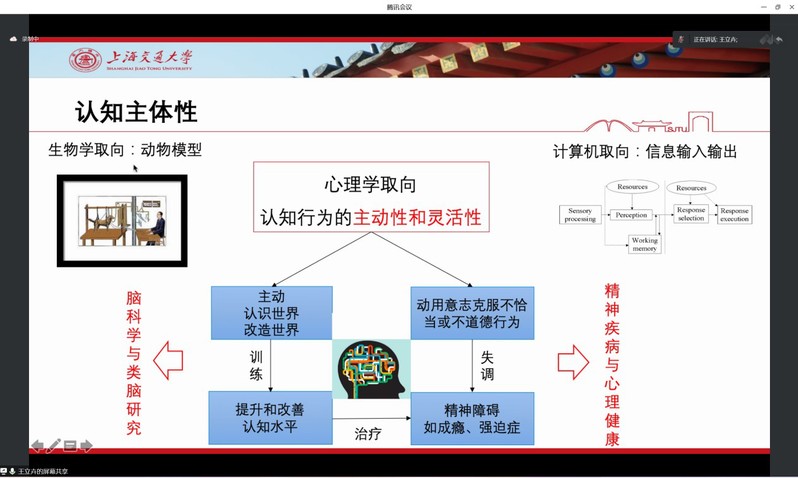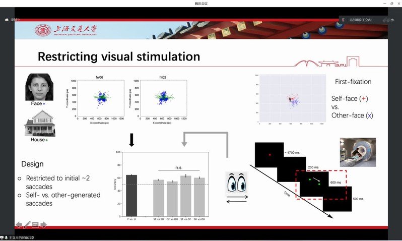 随后,王立卉副研究员介绍了本次会议报告的主题—--认知主体性,即从认知行为的主动性和灵活性研究人类的认知活动。王立卉副研究员通过系列实证研究,从视知觉、言语交流以及自由意志三个层面对这一主题进行了系统性阐释。