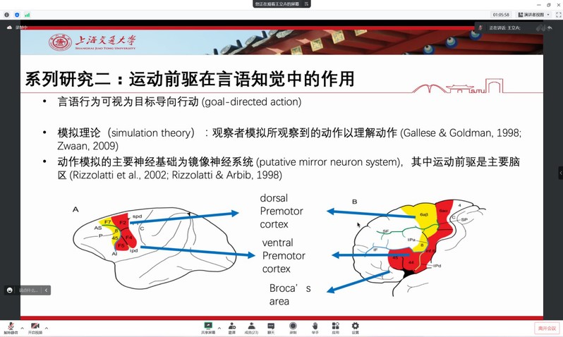在第二项系列研究中,王立卉副研究员团队采用脑成像技术,并结合脑损伤群体发现,运动前区在言语知觉(特别是言语交流)中的起到了重要作用。