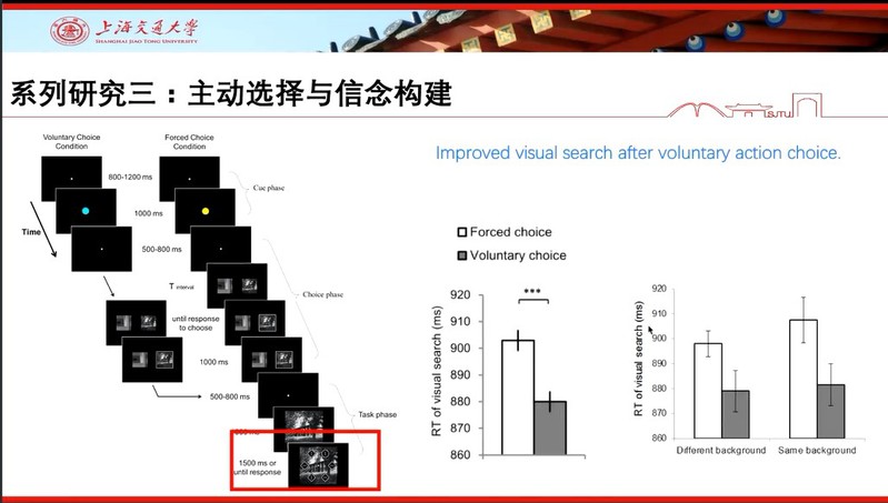 最后一项系列研究中,王立卉副研究员与合作者采用了自主选择结合认知加工范式,发现相较被迫选择,自主选择能够增强个体后续认知任务的行为表现,但改促进效应只在选择与结果之间的因果关系没有被否决的前提下成立;被证实和尚未被否决的因果关系起到类似的增强任务表现的效果,其机制是通过选择能够带来改变的“信念”,而非带来改变的“事实”。