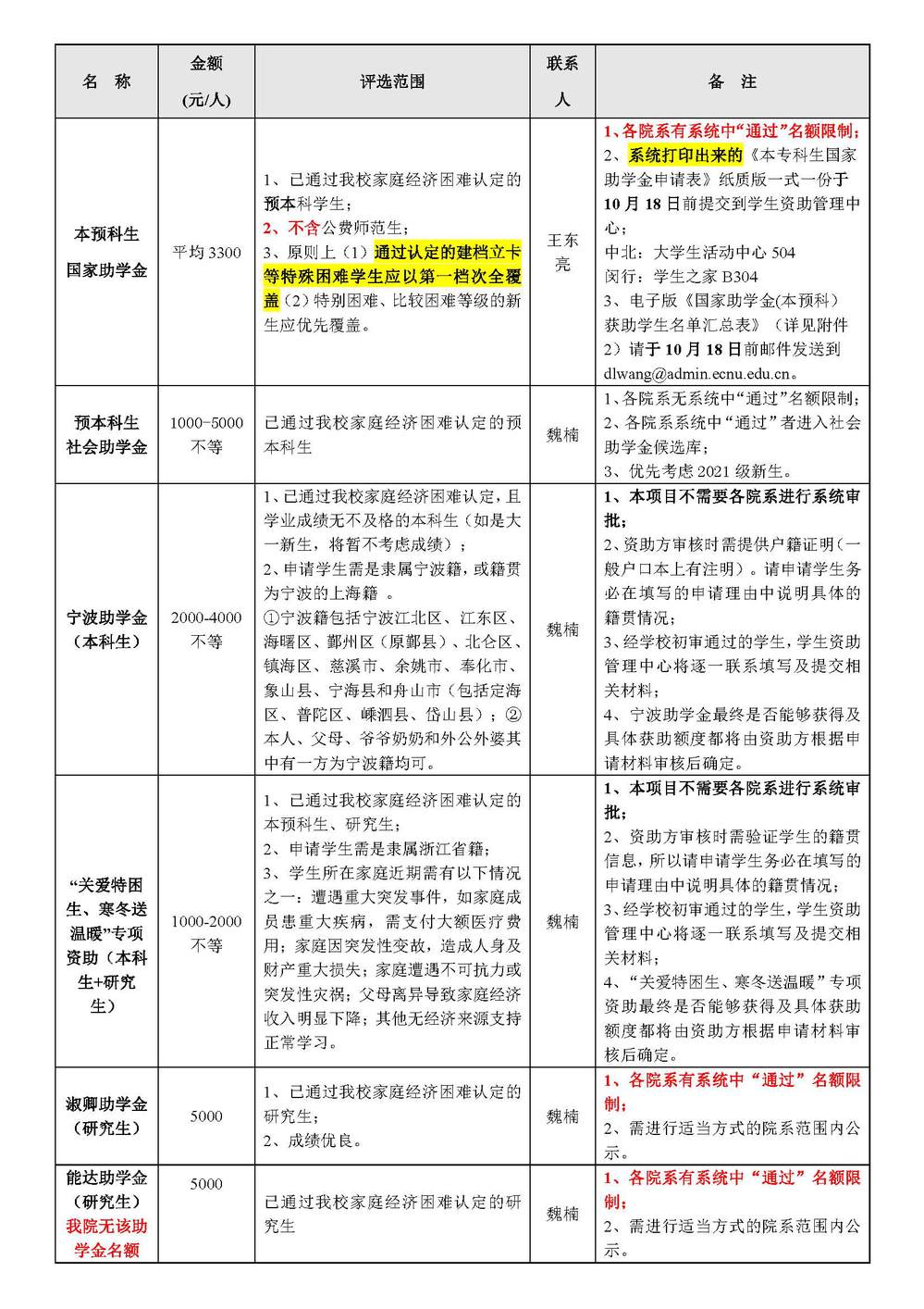 根据教育部、上海市教委及校学生资助工作安排,现将2021-2022学年各项助学金评选事宜通知如下: