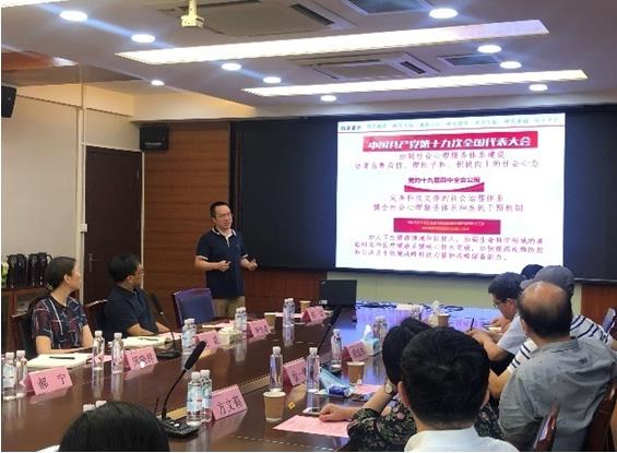 席居哲围绕“心理健康促进”主题进行汇报,他对研究团队的人员构成、研究主题的总体目标、研究技术进路、工作基础、平台准备以及未来计划作出了详细介绍。