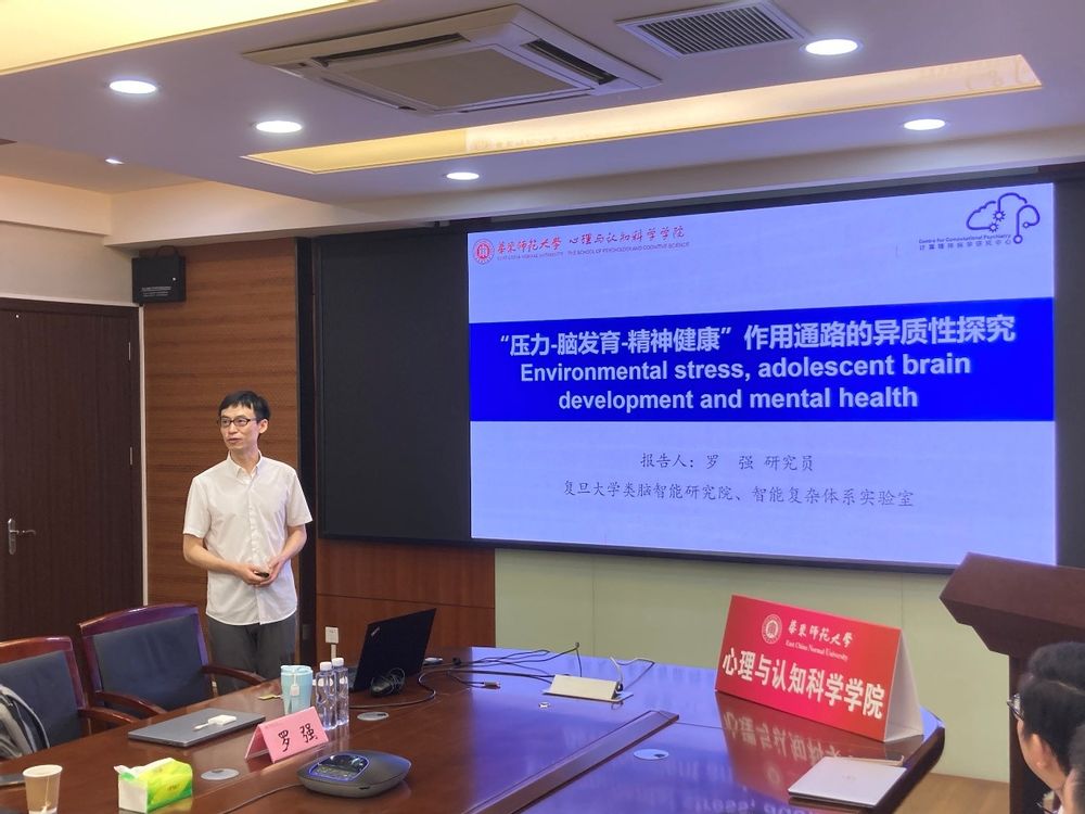 2025年7月4日上午,我院邀请复旦大学类脑智能科学与技术研究院罗强研究员,在俊秀楼305作题为“‘压力-脑发育-精神健康’作用通路的异质性探究”的学术报告。该报告作为华东师范大学第35期卓越讲坛“解码大脑:基于心理学、神经科学、计算与数据科学的交融探索”的一场,由“耀翔班”心理学拔尖学生培养基地主办,以线下线上相结合的形式开展。心理与认知科学学院副院长严超教授主持本次线下报告,相关领域的青年教师、研究生和本科生共100余人以多种形式参加了本次报告。