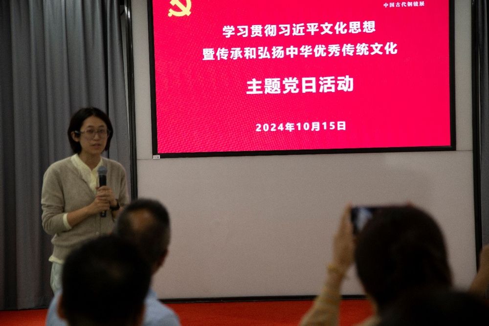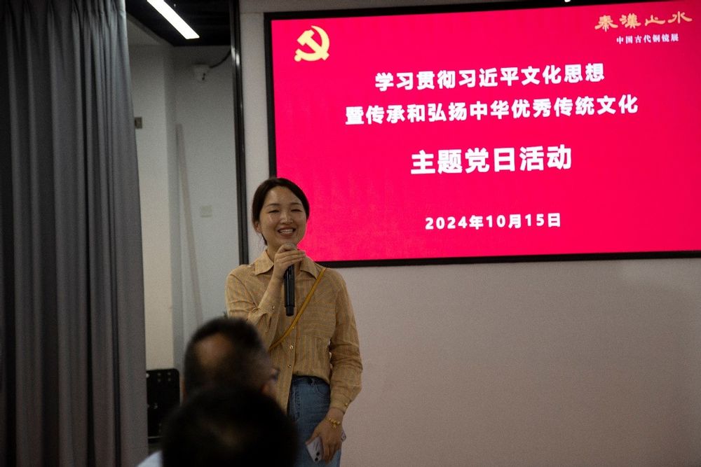 在主题党日活动中,同普路研究生公寓12号楼社区教师楼长、心理与认知科学学院兼职辅导员丁玉蓉围绕展览内容分享了铜镜在中华文化中的地位和意义,以及它们所体现的美学价值和古代智慧,尤其是“以铜为鉴”的古人智慧对日常工作的启发。同普路12号楼学生楼长、心理与认知科学学院24级认知神经科学专业博士生何丹妮则结合自身科研,谈到了本次展览对开展学术研究的启发。