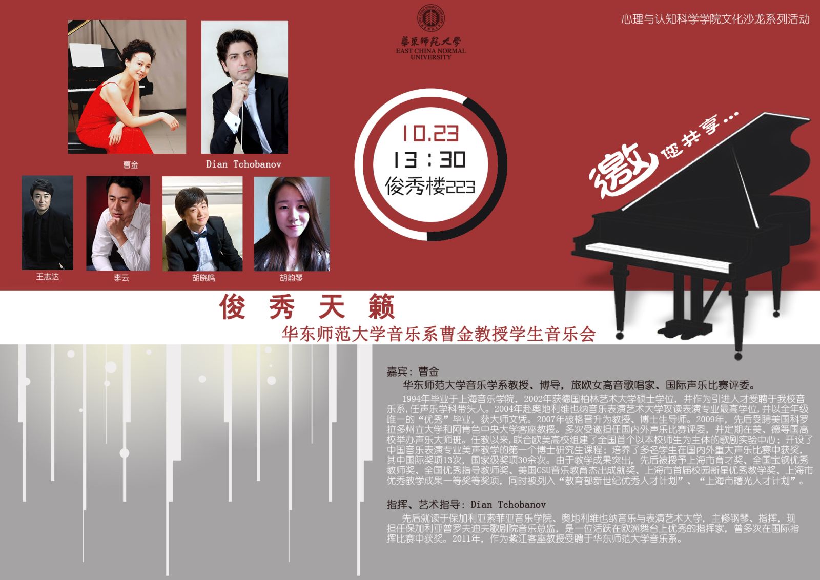 嘉宾简介:曹金 华东师范大学音乐学系教授 博士生导师 旅欧女高音歌唱家 国际声乐比赛评委