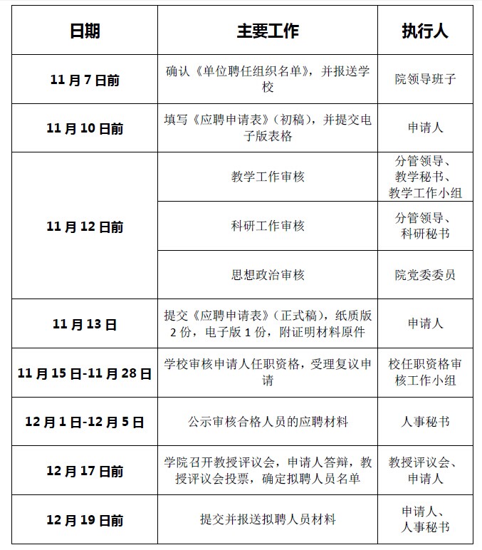 结合我院实际情况,我院聘任工作日程安排如下: