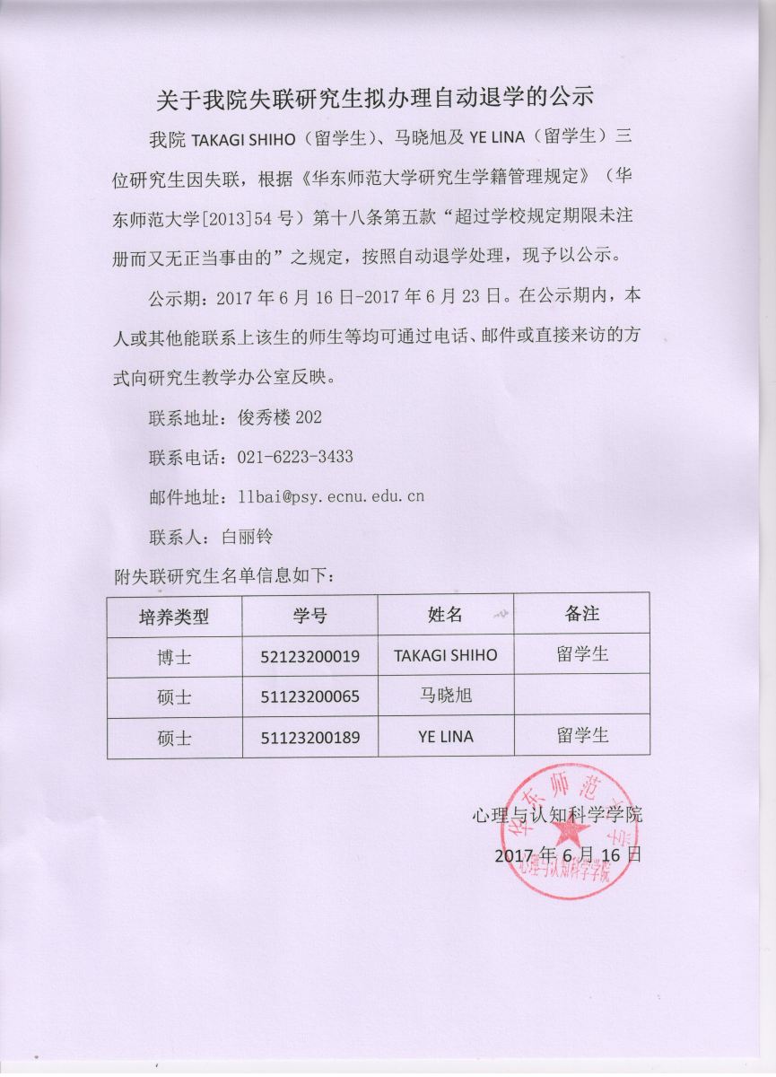 关于我院失联研究生拟办理自动退学的公示