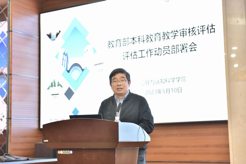 为贯彻落实教育部关于本科教育教学审核评估的文件精神和工作要求,做好本轮审核评估准备工作,5月10日下午,心理与认知科学学院在俊秀楼223报告厅,召开“教育部本科教育教学审核评估工作动员部署会”。教务处副处长彭超,院党政班子成员及全体教师参加会议。
