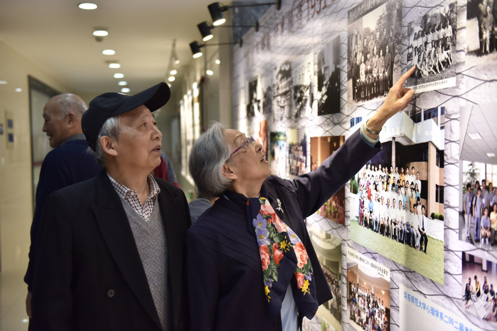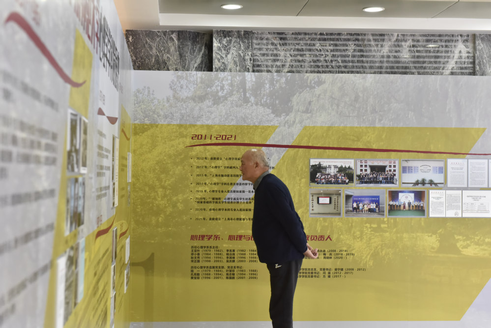 活动最后,退休老师们一同参观了“华东师范大学‘心理学’学科发展史(1951-2021)专题展”,回顾学科70年的发展历程;在“丽娃河畔的时光隧道”中找寻当年的自己;在“沉浸式打卡区”——“心理学圆形实验室”与“巴普洛夫实验室”——留下专属心理学人的独家回忆。