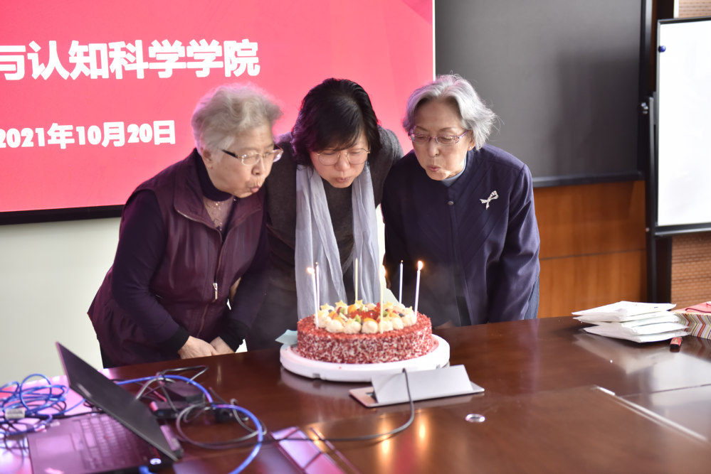 本次活动,学院特别为今年“逢五逢十”生日的老教师准备了生日蛋糕。在《祝你生日快乐》的歌声中,吴妹娟、徐敏、王锋三位老师共同吹灭了生日蜡烛。学院还为老教师们准备了敬老节大礼包和校庆70周年纪念品。