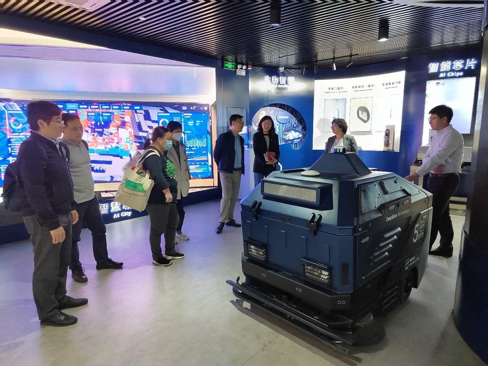 深兰科技集团董事副总裁/机器人产业集团董事长刘园桂、数字智能产业研究院首席解决方案专家刘彬彬带领大家参观了深兰科技一楼展厅,详细介绍了深兰科技的发展历史、核心技术、业务领域等,带领大家体验了深兰AI技术。深兰拥有独特的科研体系,学院一行还参观了深兰科学院,对于自动机器学习、自动驾驶技术、智能汽车设计制造、生物识别、AI基因等领域的科研成果及落地产品有了进一步直观的感受。