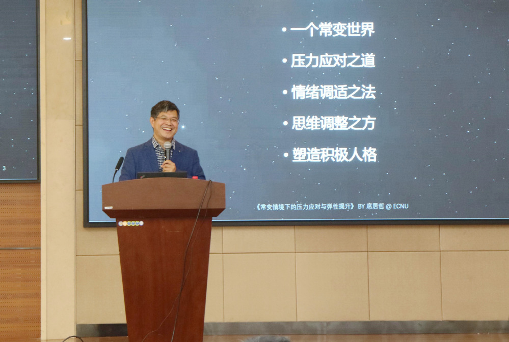 席居哲作了题为《常变情境下的压力应对与弹性提升》的报告,解读了“变与不变”的含义,深入浅出,从情绪调试之法和思维调整之方两个角度出发,为管理者塑造积极人格提出宝贵建议。