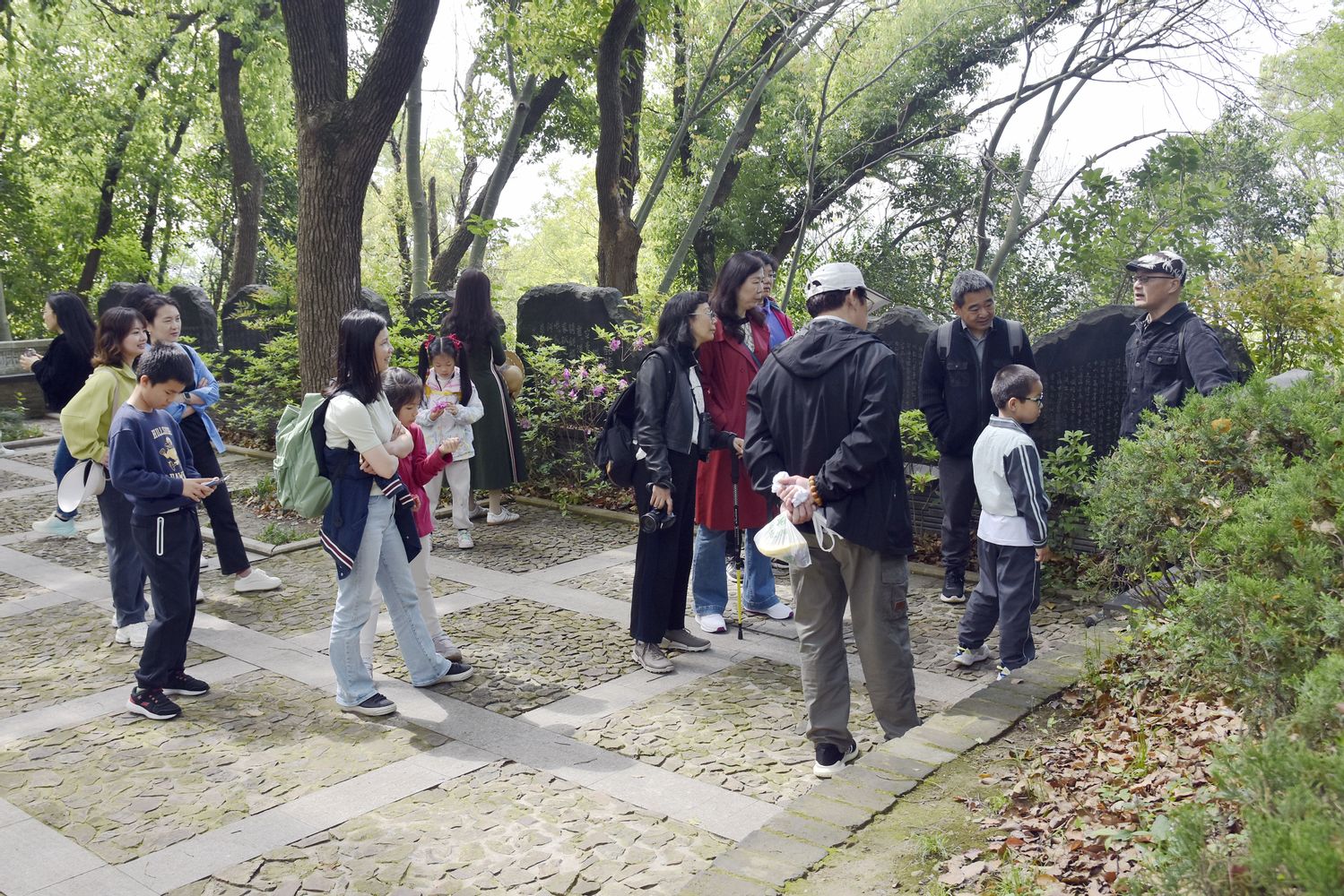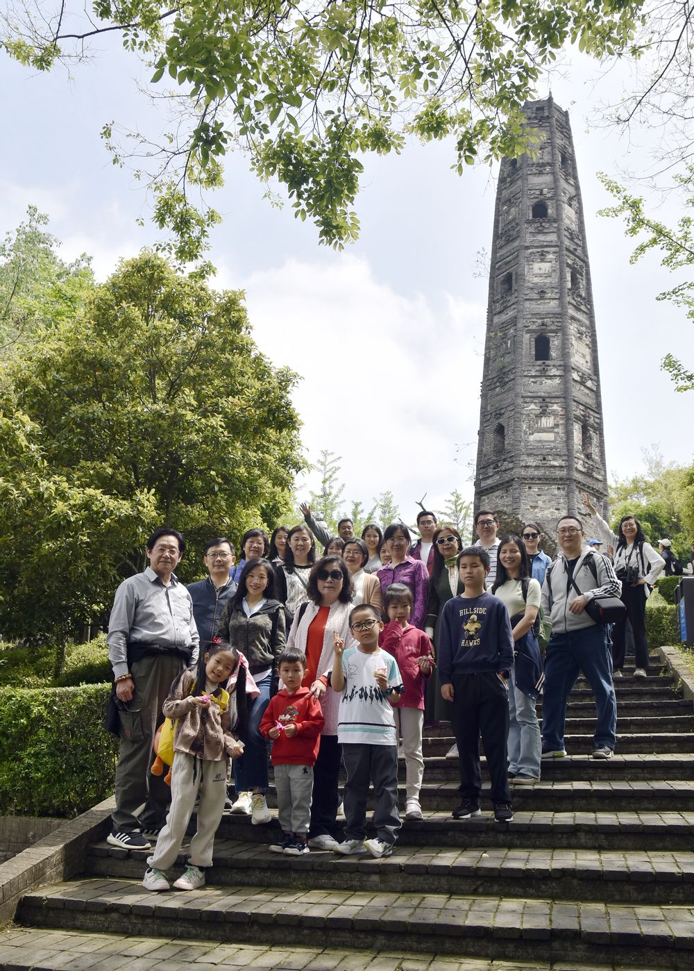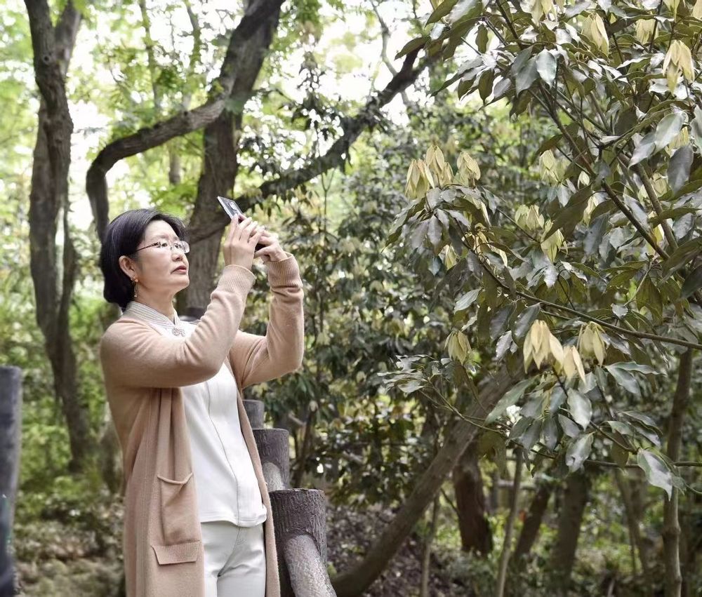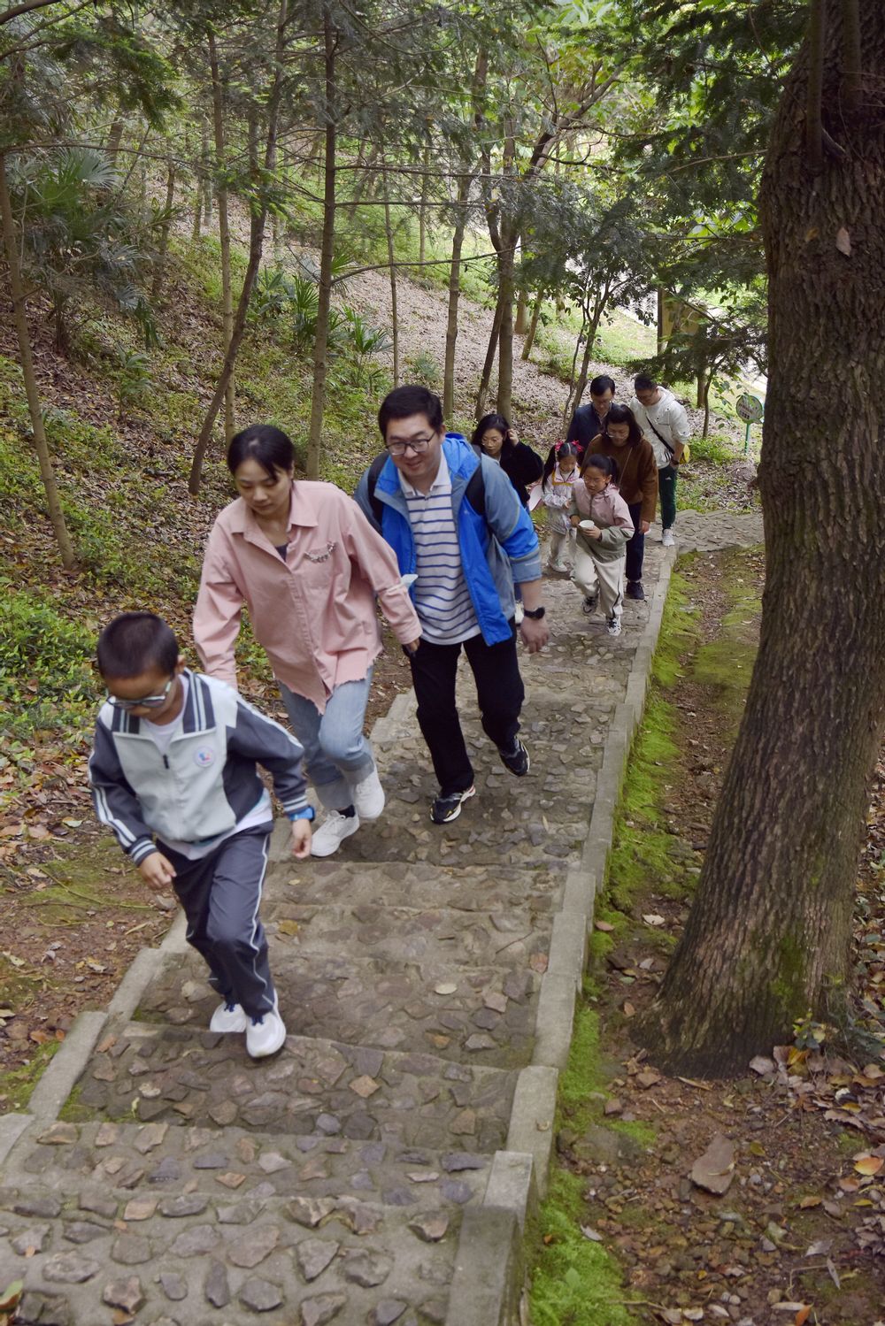 在天马山葱郁的林荫道上,众人沿阶而上,沿途繁花似锦,鸟鸣虫唱,犹如置身于一幅生动的春天画卷之中。每一步攀登都仿佛是对宋代诗人杨万里诗句“步屧随春风,村村自花柳”意境的现实再现。教师们纷纷驻足欣赏山间的美景,品味历史文化的积淀。在这座上海名山之上,老师们不仅领略了绿意盎然的春色满园,还透过历史的镜头,体悟到了古人对于攀登高峰、追求卓越的精神寄托。
