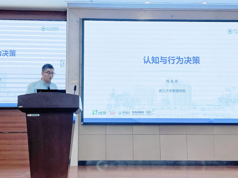 2024年4月16号上午,我院在俊秀楼223报告厅举办俊秀青年学术俱乐部系列讲座,特邀浙江大学管理学院长聘副教授陈发动作题为“认知与行为决策”的学术报告。周晓林院长及相关方向青年教师、研究生和本科生等参加了本次报告会。报告会由胡杨副教授主持。
