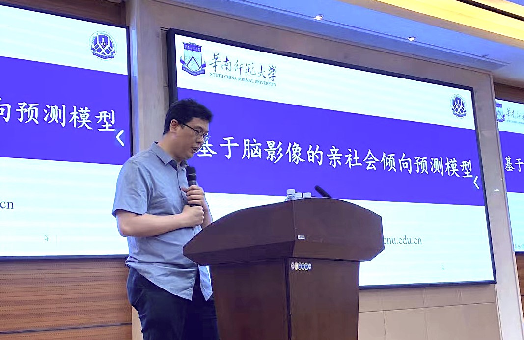 2023年5月26日下午,华南师范大学心理学院封春亮副教授应邀来到我院,在俊秀楼223报告厅作题为“基于脑影像的亲社会倾向预测模型”的学术报告。副院长郝宁教授、相关领域青年教师、研究生和本科生等40余人参加了本次报告会。报告会由我院胡杨副教授主持。