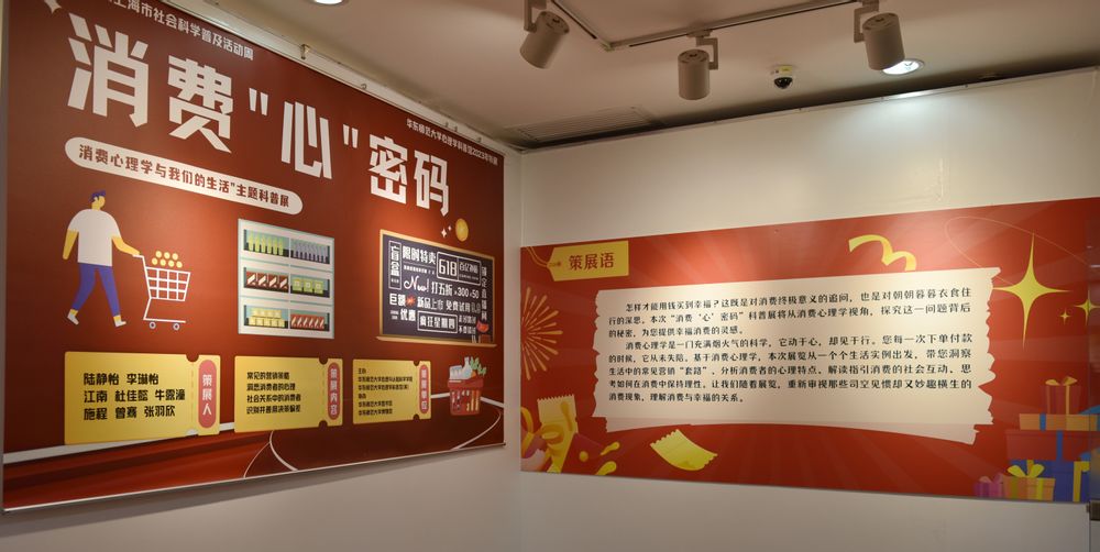 本次主题科普展将消费心理学的知识,通过多种方式,传递给大众,让大众了解消费行为的复杂性和行为背后的心理特点,帮助消费者更加理性地进行消费。