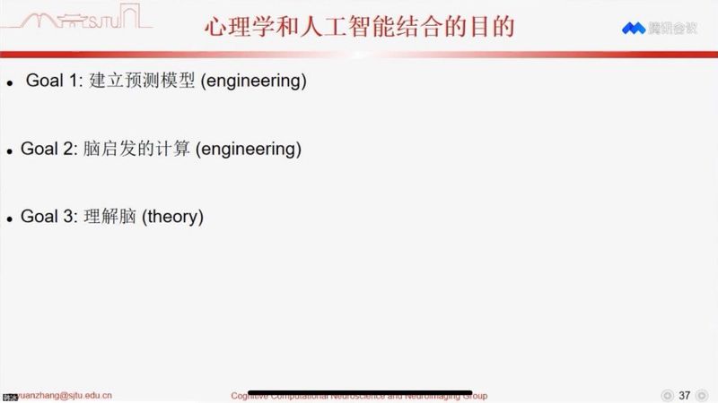 目的③是理解脑。通过思考为什么人脑会以某种方式工作,可以为脑信息加工提供一个全新的视角。然而,这个方向要求具备交叉学科背景的人才(脑科学理论知识+ 计算知识)。遗憾的是,目前国内高校的培养体系很少能培养出这样的复合型人才,这使得实现这一目标变得较为困难。然而,这也凸显了我校在探索心理学+AI复合型人才培养方面的重要意义。