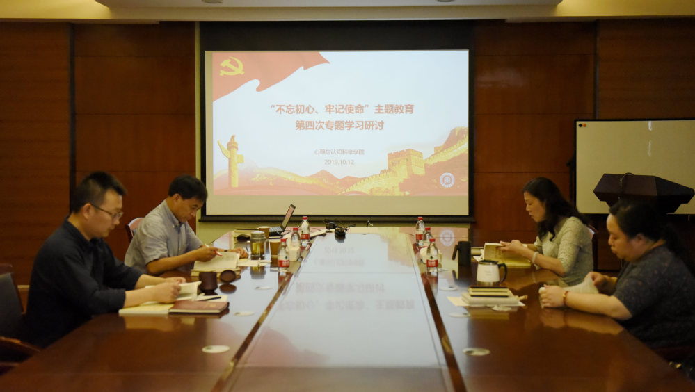 10月12日上午,心理与认知科学学院领导班子举行“不忘初心、牢记使命”主题教育第四次集中学习研讨会,共同学习《习近平关于“不忘初心、牢记使命”重要论述选编》和《习近平新时代中国特色社会主义思想学习纲要》,结合教育工作实际,交流学习体会。学院领导方媛、庄瑜、郝宁、李先春参加了学习,学习会由方媛主持。