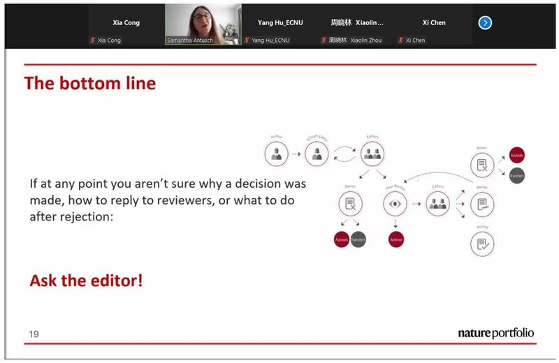 最后,Samantha编辑鼓励有意向在NHB投稿的研究者,可以在完成工作前就与编辑团队联系、讨论科研思路、想法,以判断自己的工作是否适合在NHB刊登;在投稿过程中,如果有任何问题或者意见,也十分欢迎与编辑沟通。期间,数位老师提出了自己关于投稿的疑问并得到了解答。