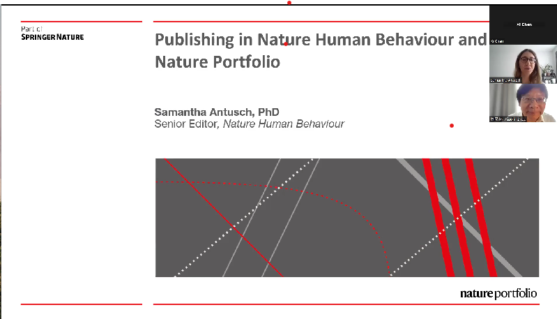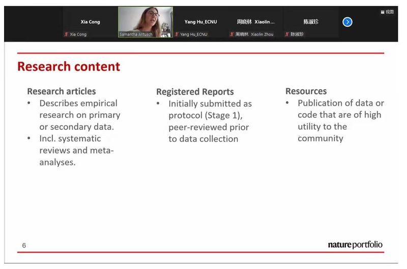 2023年6月6日,国际知名期刊Nature Human Behavior(NHB)高级编辑 Samantha Autusch博士受我院俊秀青年学术俱乐部邀请,为师生带来一场题为“Publishing in Nature Human Behaviour and the Nature portfolio”的报告,报告在线上举行,由我院胡杨副教授主持,我院院长周晓林教授致欢迎辞,约60余名师生参加。
