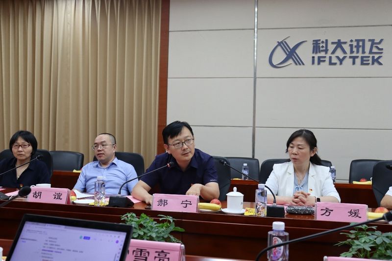 科大讯飞研究院副院长、科研部部长李鑫,科大讯飞党委副书记张云飞,科大讯飞AI资源部副总经理孙虹、陶彬彬、刘丹,科大讯飞智慧心育产品线副总经理常雪亮,科大讯飞AI资源部区域数据资源中心总监占萌萌,科大讯飞研究院科研部副部长张力,科大讯飞教育项目总监刘晨璇、科大讯飞课后服务业务部产品总监魏昆(心理与认知科学学院2021届MAP校友)等热情接待了心理与认知科学学院调研团。