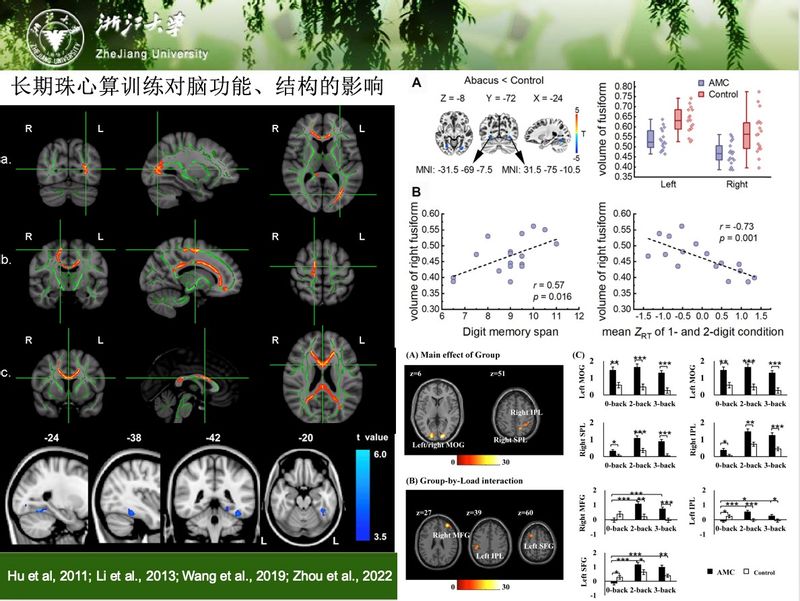 陈飞燕教授团队多年来深入研究长期珠心算训练对脑结构、脑功能以及个体差异的影响。他们发现,长期的训练能够提升大脑模块化网络的自相似性,抑制神经活动的随机化趋势,从而促进脑功能网络的分化。他们的研究结果为理解认知训练和脑可塑性之间的关系及背后的复杂机制提供了新视角。