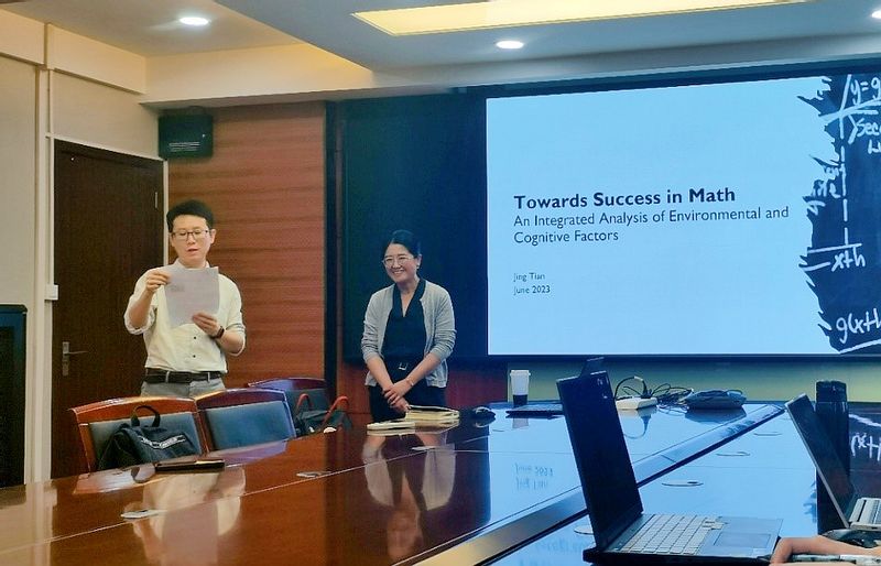 2023年6月14日下午,福德汉姆大学助理教授田晶应邀来到我院,在俊秀楼305报告厅作题为“Towards success in math: an integrated analysis of environmental and cognitive factors”的学术报告。相关领域青年教师、研究生和本科生等40余人参加了这次报告会。报告会由我院汪晨波副教授主持。