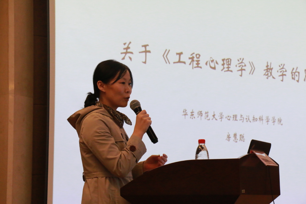 华东师范大学心理与认知科学学院房慧聪副教授报告了“关于工程心理学教学的思考”,从知识方面、能力方面讲述教学目标。在教学内容方面介绍了国内外教学的教材,以及课堂教授、论文报告、原型展示等教学形式。同时提出了一些反思与展望。